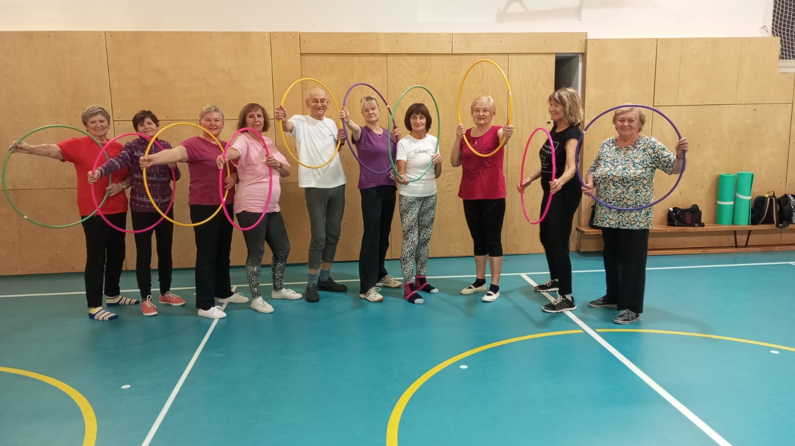 Každé pondělí a čtvrtek probíhá v tělocvičně ZŠ 5. května kondiční cvičení. Cvičíme nápaditě a různorodě, používáme i mnoho cvičebních pomůcek. Zde můžete vidět názornou ukázku z pondělního cvičení a to tentokrát probíhalo jako ,, cvičení s kruhy '' pod zkušeným vedením naší cvičitelky Alice. Tato naše cvičení přispívají k udržení tělesné kondice a díky hudebnímu doprovodu vyvolají nejen dobrý pocit z pohybu, ale i zlepší náladu. Lekce si všichni pochvalujeme a vřele doporučujeme VŠEM.